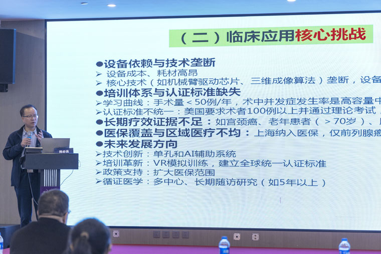 开幕式由省医师协会微创外科医师分会、省抗癌协会腔镜与机器人专委会、省妇幼保健协会妇女病防治专委会主任委员,我院张正茂教授主持。她回顾了分会成立以来的工作成果,指出本次会议旨在促进我省机器人腹腔镜等微创技术发展,聚焦青年培养,推动全省微创外科事业再上新台阶。